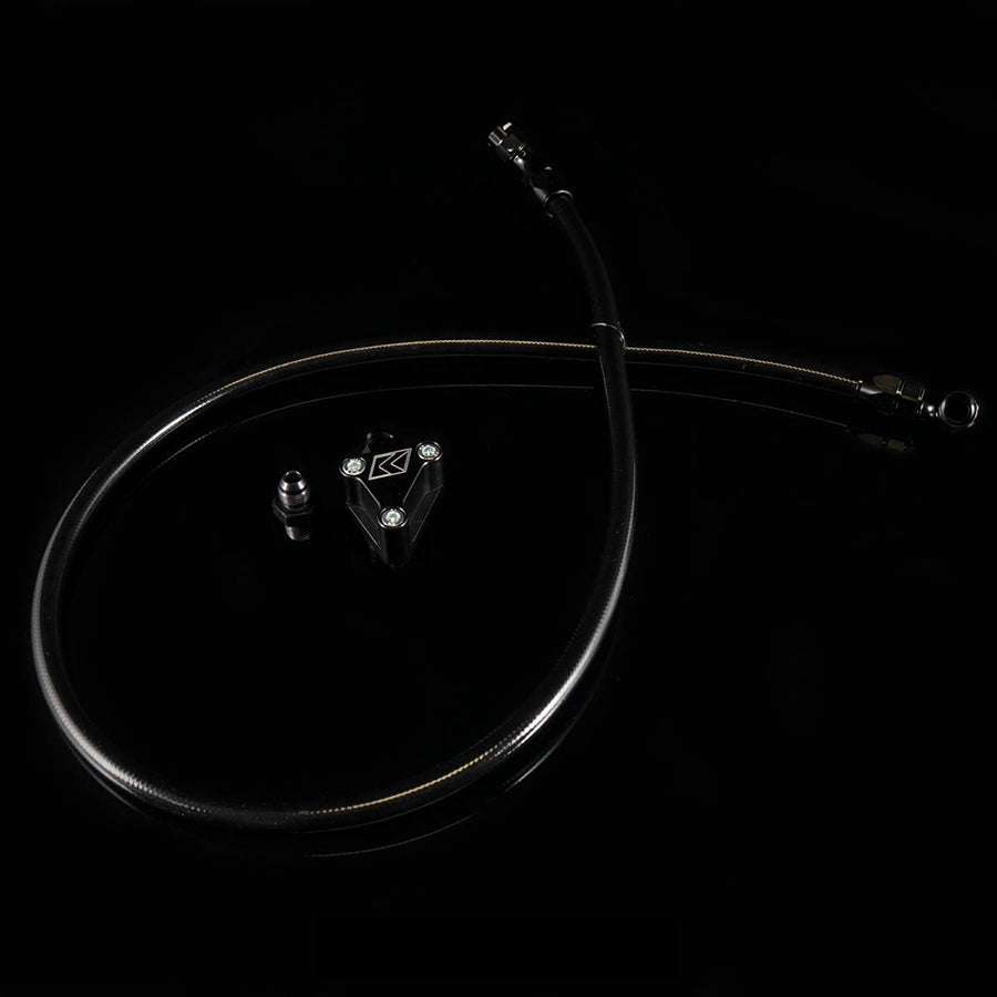 K-Tuned Power Steering Line Kit is a replacement kit for the RSX, and some swap applications. The line and fittings are designed to handle the extreme pressures that the power steering pump, which can see over 1,000 psi. This offers a clean and simple look while retaining functional power steering. The line features swivel ends and allows it to clear the stock mount stud.