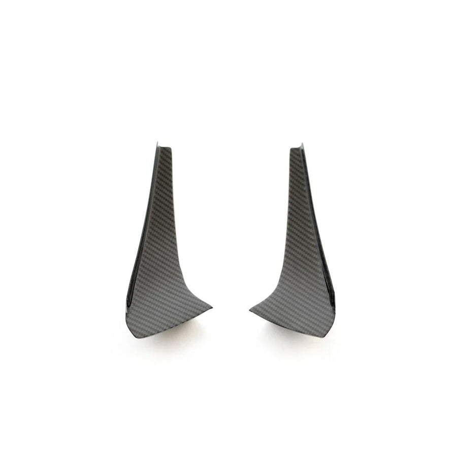 APR Front Bumper Canards are the perfect answer to aerodynamically tune the handling for the front of a car. APR Front Bumper Canards help increase front downforce at high speeds as well as re-direct airflow away from the wheel wells. The added downforce stabilizes the cars chassis during hard cornering and increases traction for faster lap times.