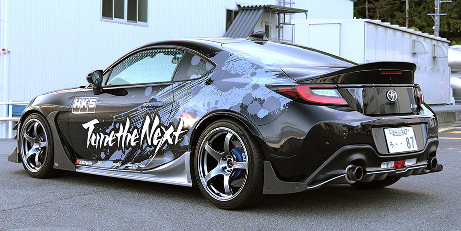 - The rear features a split design compatible with both stock vehicles and those equipped with the HKS Body Kit.