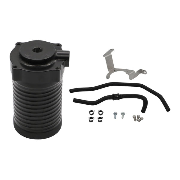 Modern turbocharged engines recirculate crankcase blowby gases back into the intake tract through the factory PCV system. While effective for emissions control, these gases also carry oil vapor, fuel, and moisture that can accumulate in the intake manifold over time. These contaminants contribute to carbon buildup on intake valves, reduce effective fuel octane, and increase the likelihood of detonation. The PRL Helix Air Oil Separator is designed to remove these contaminants before they are reintroduced into the intake system, helping maintain a cleaner intake path and more consistent engine operation without venting metered air or altering factory drivability.