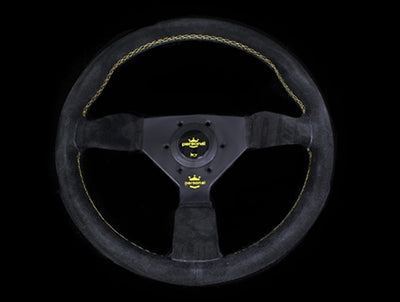 Personal Neo Grinta w/ Yellow Logo Bottom Spoke Steering Wheel - 350mm | Black / Black Suede / Yellow Stitch