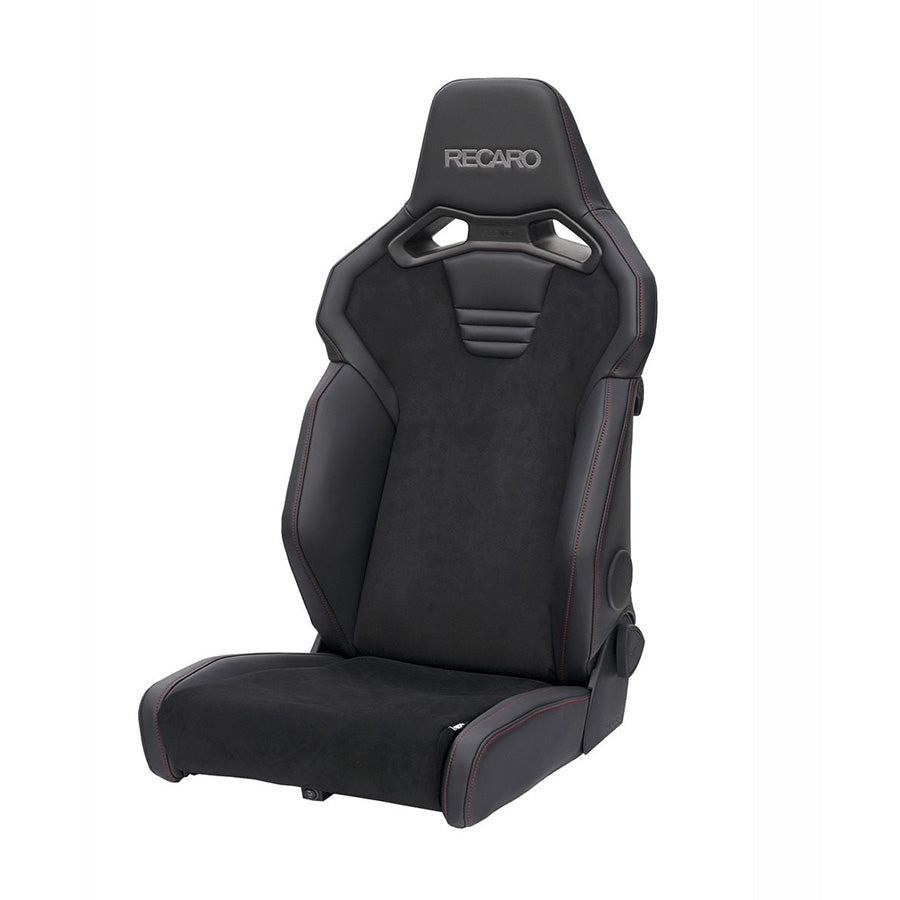 Recaro SR-C ASM Limited A/R reclinable sport seat features low side bolsters with black leather/alcantara/red stitch material.