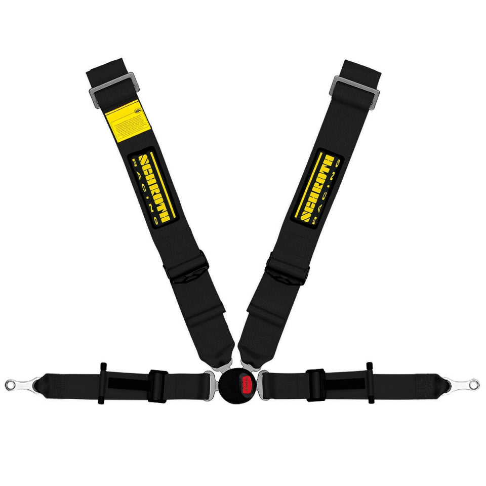 The Profi II ASM FE is essentially the same as the Profi II ASM, except it features a Push-Button Cam lock for applications where street driving is anticipated. The orange push button that says "Press" is necessary to retain street legality and so an EMT that shows up at an accident scene will know how to release your restraint. The FE version also features sewn in Bolt-In Tabs for the lap belt attachment points, for use in applications where space is limited. Because of the sewn in end fittings, the Flex Belt lap is not available in this harness. It is designed to be used as a four point system. For this reason it is perfect for use in Driver Education cars or any other application where stock seats are retained. A seat that was not originally desiged for use with a racing restraint should never be modified to accept an sub strap.