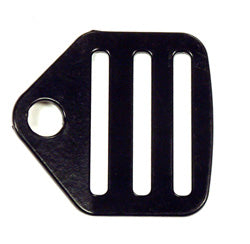 The B63 bracket is commonly used in formula and prototype applications where there are no in-line adjusters on the lap belts. This bracket incorporates a 3 bar slide into the bracket allowing you to adjust the length at the bolt in location. Note: you cannot adjust length once a driver is in the car. Dimensions are 4mm thick, 68x72mm with a 13mm (1/2") hole. There is a slight 10degree bend so that this bracket can be bolted directly to a fl at surface and leave room for webbing wrapped into it. This bracket can only be wrapped in. FIA and 16.1 approved. For SFI 16.5 Approval, use B63NC.