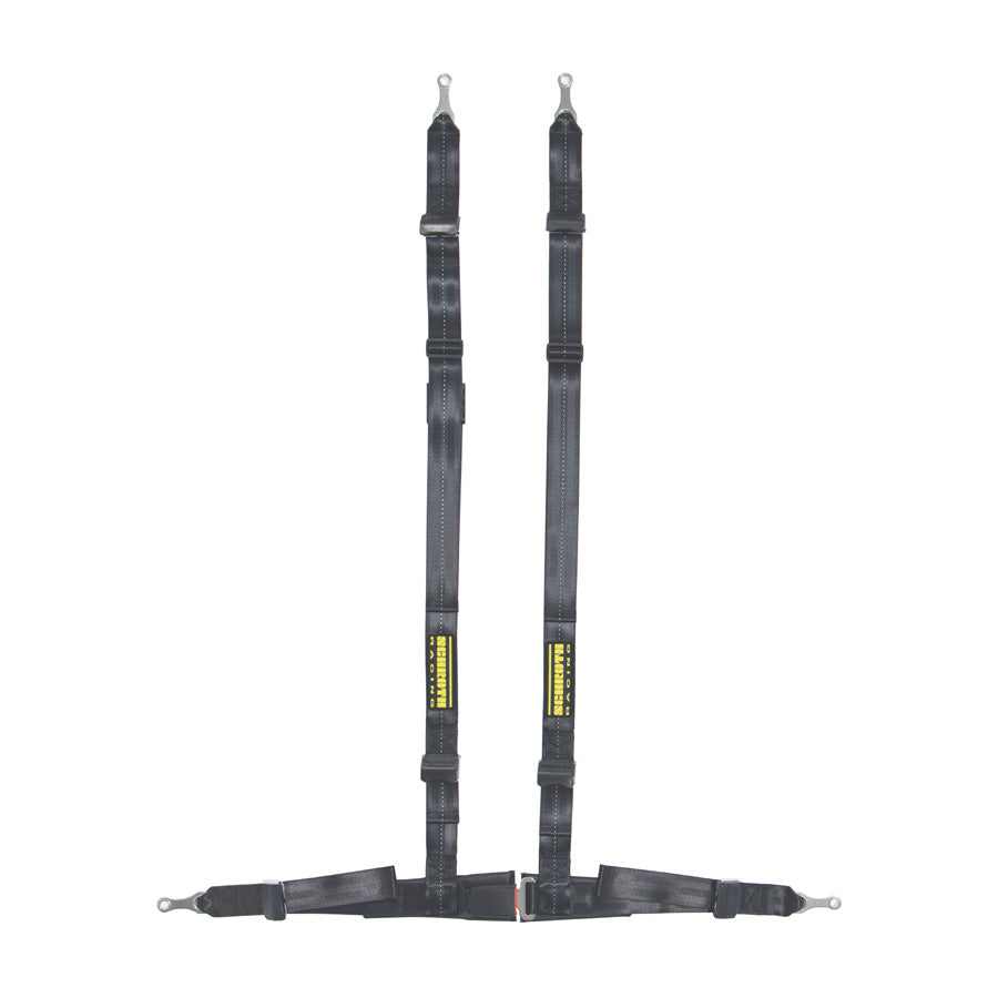 Where a Rallye 3 or 4 has a quick disconnect buckle between the front section of the harness and the tailstrap, the Rallye Cross has two independant shoulder straps that go straight to the mounting point. The mounting point can be either wrap or bolt, the most common being wrapped around a harnessbar.