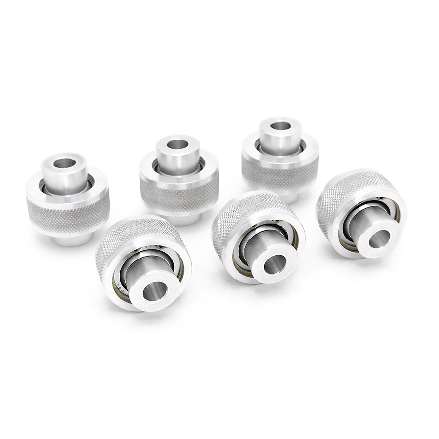 SPL Monoball Bushings feature FK Racing Bearings with a self lubricating Teflon liner for long life and maximum performance. Highly precise (machined to 1/1000th inch) CNC machined T6061 Aluminum bearing shells provide an accurate fit.