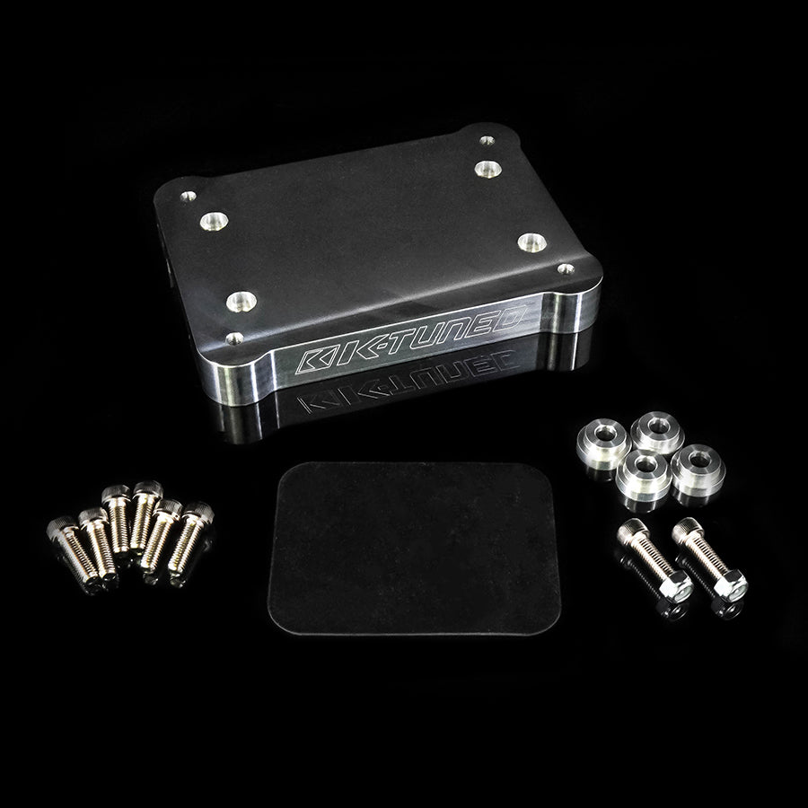 The K-Tuned Billet Shifter Base Plate is designed to install an RSX Type-S or comparable shifter box without cutting a hole in the exhaust tunnel of the chassis. This setup is preferred by many racers, esp. road course racers, because it mounts the shifter higher in the vehicle, keeping it closer to the driver and the steering. It also leaves a lot more room below the car for large exhaust systems.