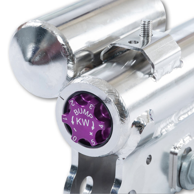 Similar to the KW Competition suspension used in international motorsports, the KW 3-Way Clubsport coilover kit allows fine tuning of the compression damping separately in the low-speed and high-speed range. The click adjustments of the TVCLH-A valve technology make for easy adjustment directly on the reservoir. You can modify the low-speed compression damping with 6 precise clicks with the purple low speed adjustment dial and directly beneath it the golden adjustment wheel provides an additional 14 precise clicks of high speed compression adjustment. In addition, the TVR-A technology provides 16 clicks to noticeably adjust the rebound damping independently of the compression damping. If you would like to adjust the KW 3-Way Clubsport coilover kit it can easily be adjusted for more comfort or to an alternative setup for a new race track. The KW 3-Way Clubsport benefits from the same motorsports technology that has proven its endurance with multiple overall wins at the ADAC Zurich 24h Nurburgring race.
