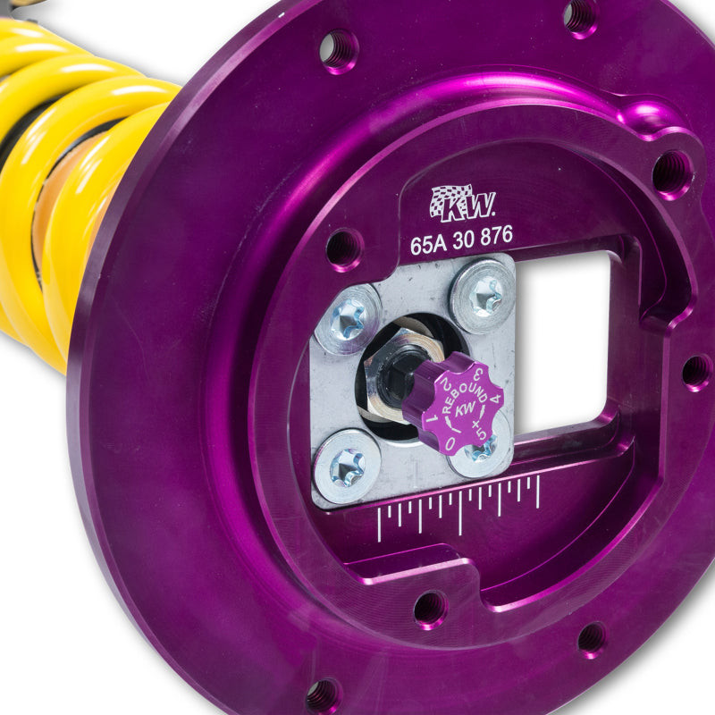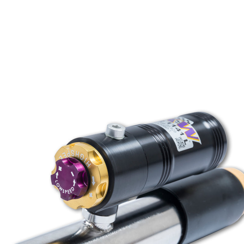 KW V4 coilovers are a combination of our innovative, race proven technology, as well as decades of experience tuning high end sports cars, super sedans and exotics such as the Audi R8, Audi RS6, BMW M5, Lamborghini Aventador LP 750-4 SV, Dodge Charger SRT Hellcat, Mercedes AMG GT and more. In addition to the individually adjustable ride height the KW V4 coilover kit allows an independent Adjustment -f the rebound damping as well as the low-speed and high-speed compression damping. Each KW V4 coilover kit is delivered with a vehicle-specific comfort setting and with the integrated Adjustment -controls the damping characteristics can be set quickly and intuitively transformed to an optimized performance setup. The 3-way adjustable high-performance dampers in the KW V4 coilover kits feature independent Adjustment -f the rebound damping utilizing patented TVR-A technology, as well as the low speed and high speed compression damping utilizing TVCLH-A technology. The KW V4 coilovers are based upon successful race technology utilized by multiple overall winners of the ADAC Zurich 24h Nurburgring race. The new KW V4 coilovers are exclusively developed for select high-performance vehicles, which benefit greatly from the KW suspension technology -o improve their driving dynamics.