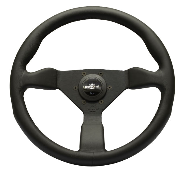 Personal Grinta Steering Wheel - 350mm | Black Leather/Black Spoke/Black Thread